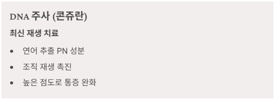 | 콘쥬란 (DNA) | 1주 간격 3회 | 약 50,000원 ~ 70,000원 | 선별급여 (환자부담 80%) |