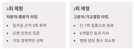 | 종류 | 투여 주기 | 대략적 비용 (1회당) | 특징 |