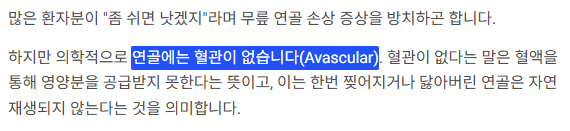 하지만 의학적으로 연골에는 혈관이 없습니다(Avascular).