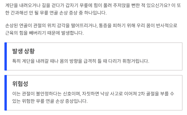 계단을 내려오거나 길을 걷다가 갑자기 무릎에 힘이 풀려 주저앉을 뻔한 적 있으신가요?