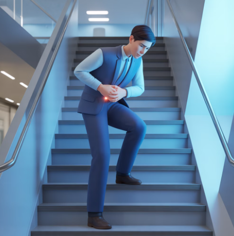 - 발생 상황: 특히 계단을 내려갈 때나 몸의 방향을 급격히 틀 때 다리가 휘청거립니다.