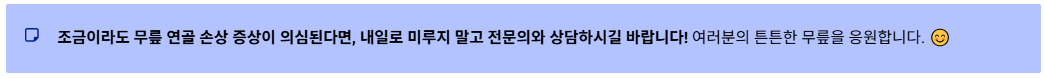 여러분의 튼튼한 무릎을 응원합니다. 😊