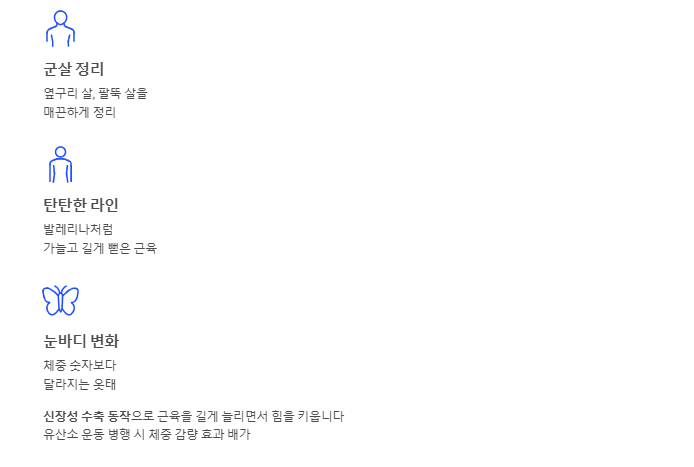 - 군살 정리: 울퉁불퉁한 옆구리 살, 팔뚝 살을 매끈하게 정리해 주는 필라테스 효과가 뛰어납니다.