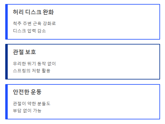 - 관절 보호: 무리한 뛰기 동작 없이, 스프링의 장력과 저항을 이용하므로 관절이 약한 분들도 안전하게 필라테스 효과를 누릴 수 있습니다.