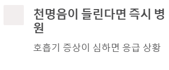 표에서 보듯, 고열보다는 '호흡기 증상(거친 숨소리)'이 심하고 어린 아기라면