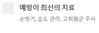 | 예방 | 손 씻기, 고위험군 주사 | 매년 백신 접종 | 개인 위생 |