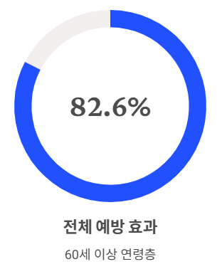 - 예방 효과: 만 60세 이상 전체에서 82.6%의 예방 효율을 보였습니다.