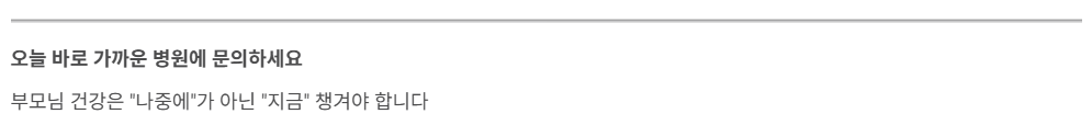 부모님의 건강은 "나중에"가 아니라 "지금" 챙겨야 합니다.