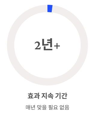- 지속성: 매년 맞는 독감과 달리, 한 번 맞으면 최소 2년 이상 효과가 지속될 것으로 보고되고 있습니다.