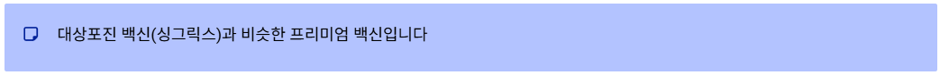 - 대상포진 백신(싱그릭스)과 비슷한 프리미엄 백신 라인입니다.