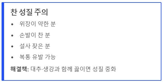 ✔️ 차가운 성질 (위장 장애)