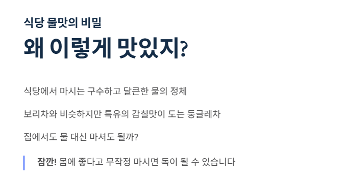 안녕하세요! 식당에 갔을 때 맹물 대신 구수~하고 달큰한 물이 나오면 괜히 기분이 좋아지죠.