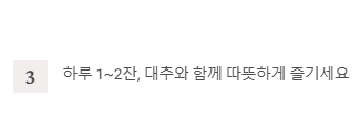 - 위장이 차가운 분들은 대추와 함께 끓이거나 하루 1~2잔으로 조절해서 드세요.