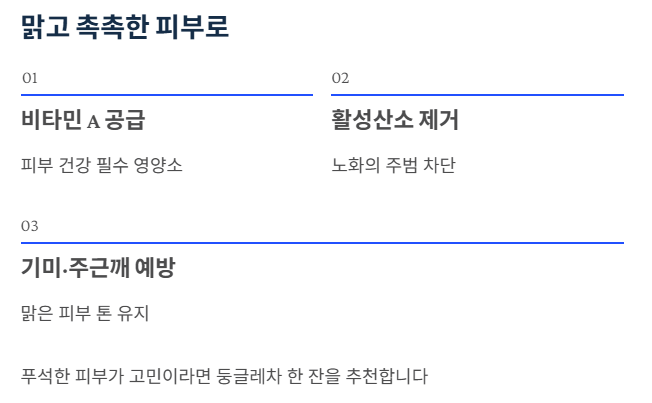 이는 피부 노화를 늦추고, 기미나 주근깨를 예방하여 피부를 맑고 촉촉하게 유지하는 데 도움을 줍니다.