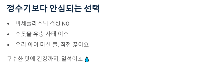 "우리 아이 마실 물인데, 정수기보다 끓인 물이 낫지 않을까요?"