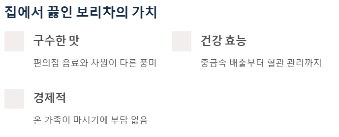 편의점에서 사 먹는 음료도 좋지만, 집에서 정성껏 끓인 보리차의 구수함과 건강함은 따라올 수 없죠.