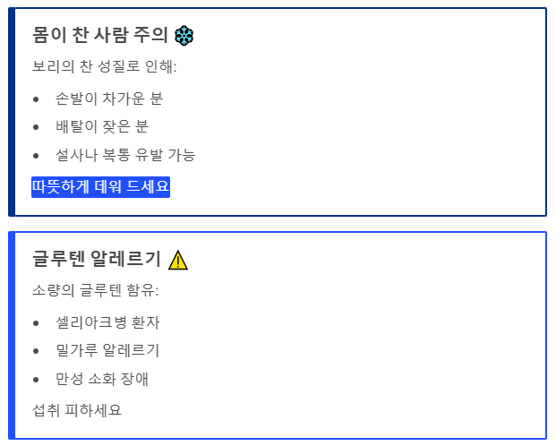 설사나 복통을 유발할 수 있습니다. 이런 분들은 따뜻하게 데워 드시는 것이 좋습니다.