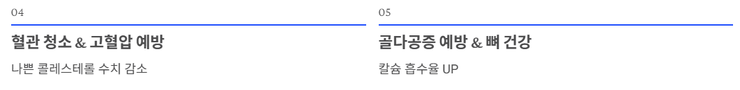 혈관 내 나쁜 콜레스테롤(LDL) 수치를 낮추고 혈액 순환을 원활하게 합니다.