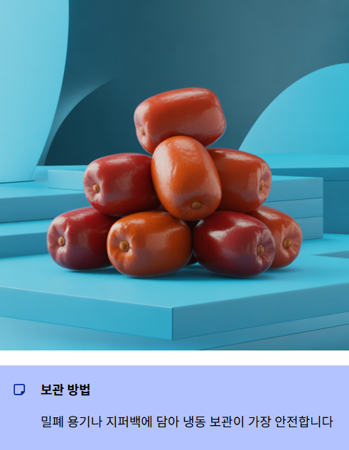 | 구분 | 좋은 대추 고르는 TIP | 보관 방법 |