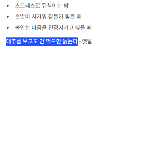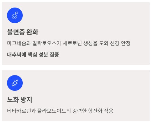 대추의 단맛을 내는 성분(갈락토오스 등)과 마그네슘이 세로토닌 생성을 도와 긴장된 근육과 신경을 편안하게 이완시킵니다.
