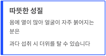 - 따뜻한 성질: 몸에 열이 너무 많아 얼굴이 자주 붉어지거나 열감을 느끼는 분들은 과하게 드시면 더위를 탈 수 있습니다.