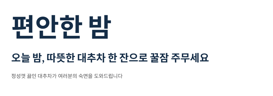 오늘 밤, 정성껏 끓인 달콤하고 따뜻한 대추차 한 잔으로 꿀잠 주무시는 건 어떨까요? 여러분의 편안한 밤을 응원합니다!