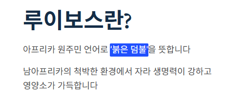 루이보스(Rooibos)는 아프리카 원주민 언어로 '붉은 덤불'을 뜻합니다.