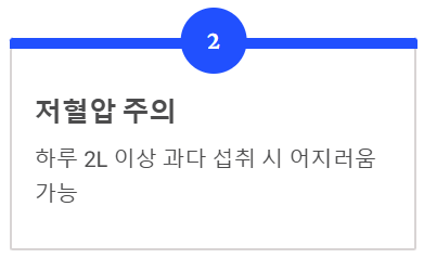 - 저혈압 주의: 혈압을 낮추는 효과가 있어, 심한 저혈압 환자가 물 대신 과도하게(하루 2L 이상) 마실 경우 어지러움을 느낄 수 있으니 적당량 섭취하세요.