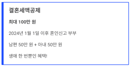 ✔️ 결혼세액공제 (최대 100만 원)