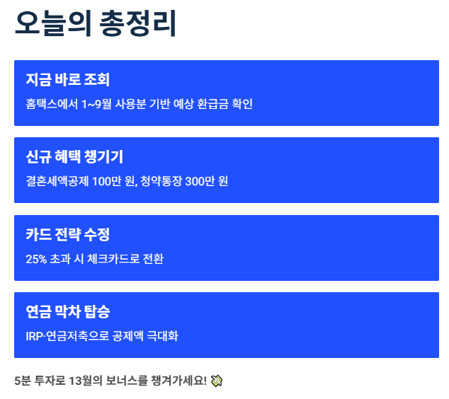 마무리 : 연말정산 미리보기, 아는 만큼 돌려받습니다! 💸