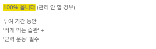 투여 기간 동안 '적게 먹는 습관'과 '근력 운동'을 몸에 익혀놓지 않으면,