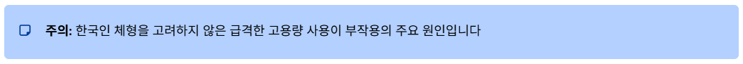 - 원인: 한국인의 체형을 고려하지 않고 처음부터 고용량을 쓰거나, 증량 스케줄을 너무 빠르게 가져갔기 때문일 확률이 높습니다.