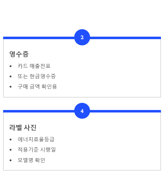 건조기와 식기세척기 같은 신가전도 포함되니 꼼꼼히 챙기세요.반드시 에너지소비효율등급과 적용기준 시행일을 충족해야 합니다.