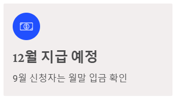 하지만 9월 신청자는 12월 말 입금을 기다리시면 되고, 신청을 놓친 분은 내년 3월 1일을 기억하시면 됩니다.