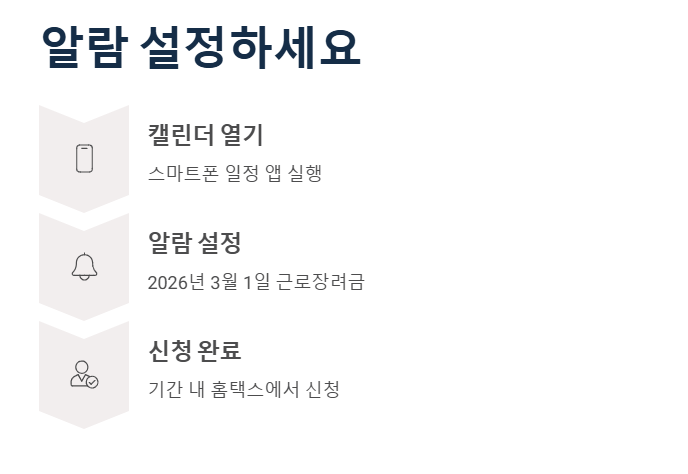 스마트폰 캘린더에 '3월 1일 근로장려금'이라고 알람을 설정해두는 건 어떨까요?
