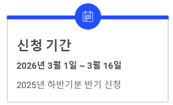 - 놓친 분들은 2026년 3월 1일 ~ 16일 반기 신청 기간을 노려야 함.