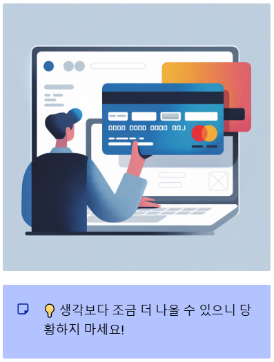 - 온라인 결제 시 1.32%~3.63%의 시스템 이용료가 추가됨을 기억하세요.