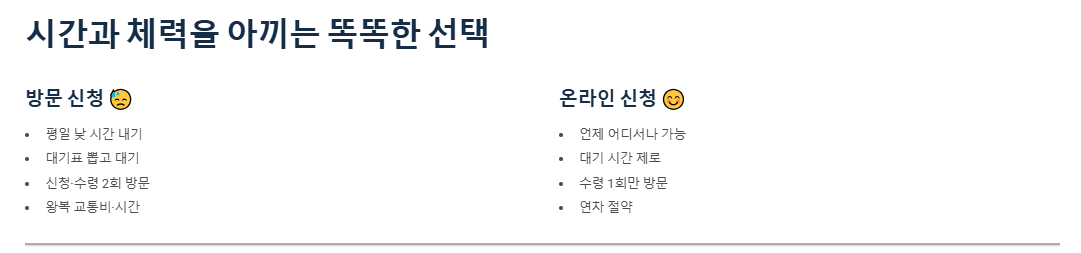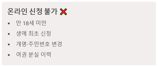 - ⚠️ 온라인 신청 불가 (직접 방문 필수):