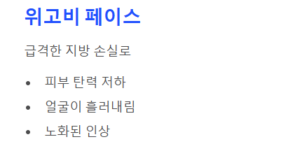 - 위고비 페이스 (Wegovy Face): 지방이 너무 빨리 빠지면서 피부 탄력이 속도를 따라가지 못해, 얼굴이 흘러내리듯 늙어 보이는 현상입니다.