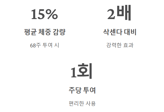 - 감량 수치: 68주 투여 시 평균 -15%의 체중 감량이 확인되었는데, 이는 삭센다(-8%) 효과의 약 2배에 달하는 강력한 수치입니다.