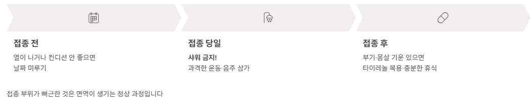 - 접종 전: 열이 나거나 컨디션이 안 좋으면 날짜를 미루세요.