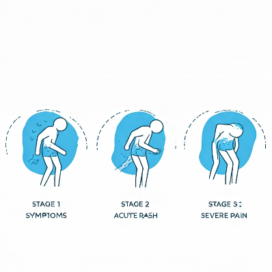 ✔️ 2단계: 띠 모양의 붉은 발진과 수포 (급성기)