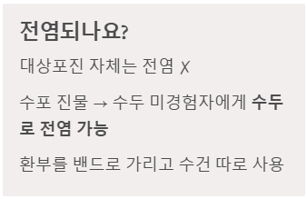 - 주의: 수두를 앓은 적이 없는 사람(주로 영유아)이 환부의 진물에 닿으면 '수두'에 걸릴 수 있습니다. 수건을 따로 쓰고, 환부를 밴드로 잘 가려주세요.