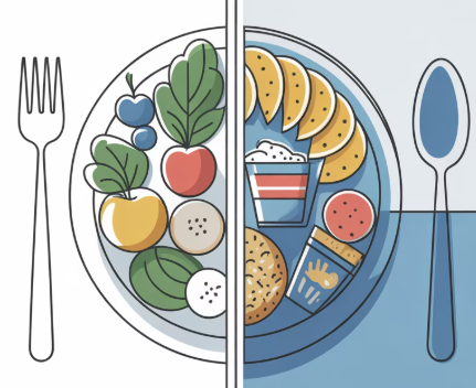| 곡류 | 잡곡밥, 통밀빵, 오트밀 | 흰 쌀밥, 떡, 국수, 빵 |