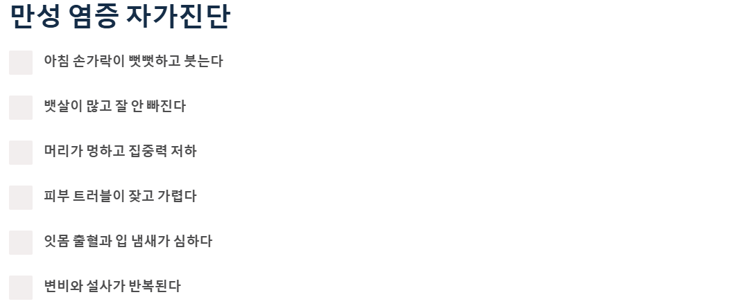 1. 혹시 나도? 만성 염증 자가 진단 체크리스트 📝