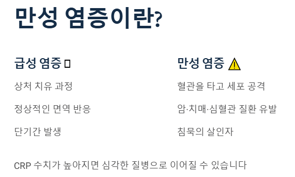 이런 증상이 지속된다면 혈액 내 CRP(C-반응성 단백질) 수치가 높아져 있을 확률이 큽니다.