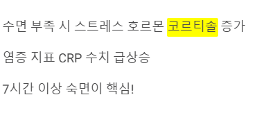 수면이 부족하면 스트레스 호르몬인 코르티솔이 분비되어 염증 수치가 급격히 올라갑니다.