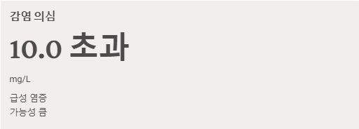 | 감염 의심 | 10.0 초과 | 급성 염증(감기, 장염, 관절염 등) 가능성 큼 |
