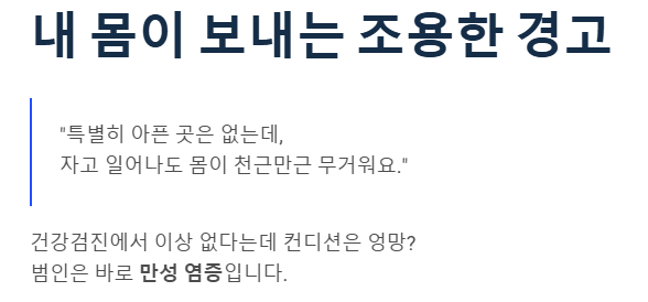 - 이유 없는 피로, 관절통, 뱃살은 염증이 보내는 경고 신호입니다.