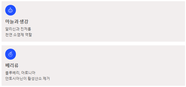 - 마늘과 생강: 알리신과 진저롤 성분은 천연 소염제 역할을 합니다.